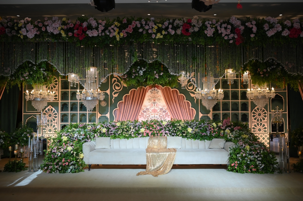 Any wedding stage requires floral arrangements. Even the easiest arrangements are lifted up by roses, orchids, jasmine, and lilies.